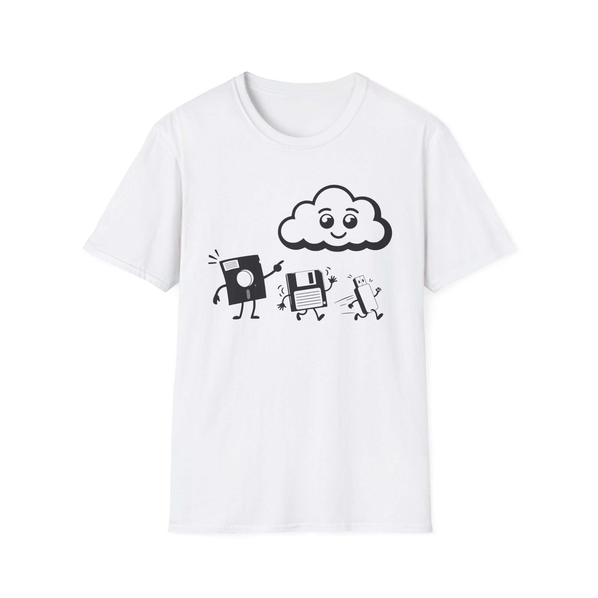 From floppy to USB, the cloud has entered the chat. Featuring the evolution of storage in one awkward family reunion, this hilarious tee is printed on soft 100% cotton with a true-to-size fit, comfy enough for both old-school and new-school techies.