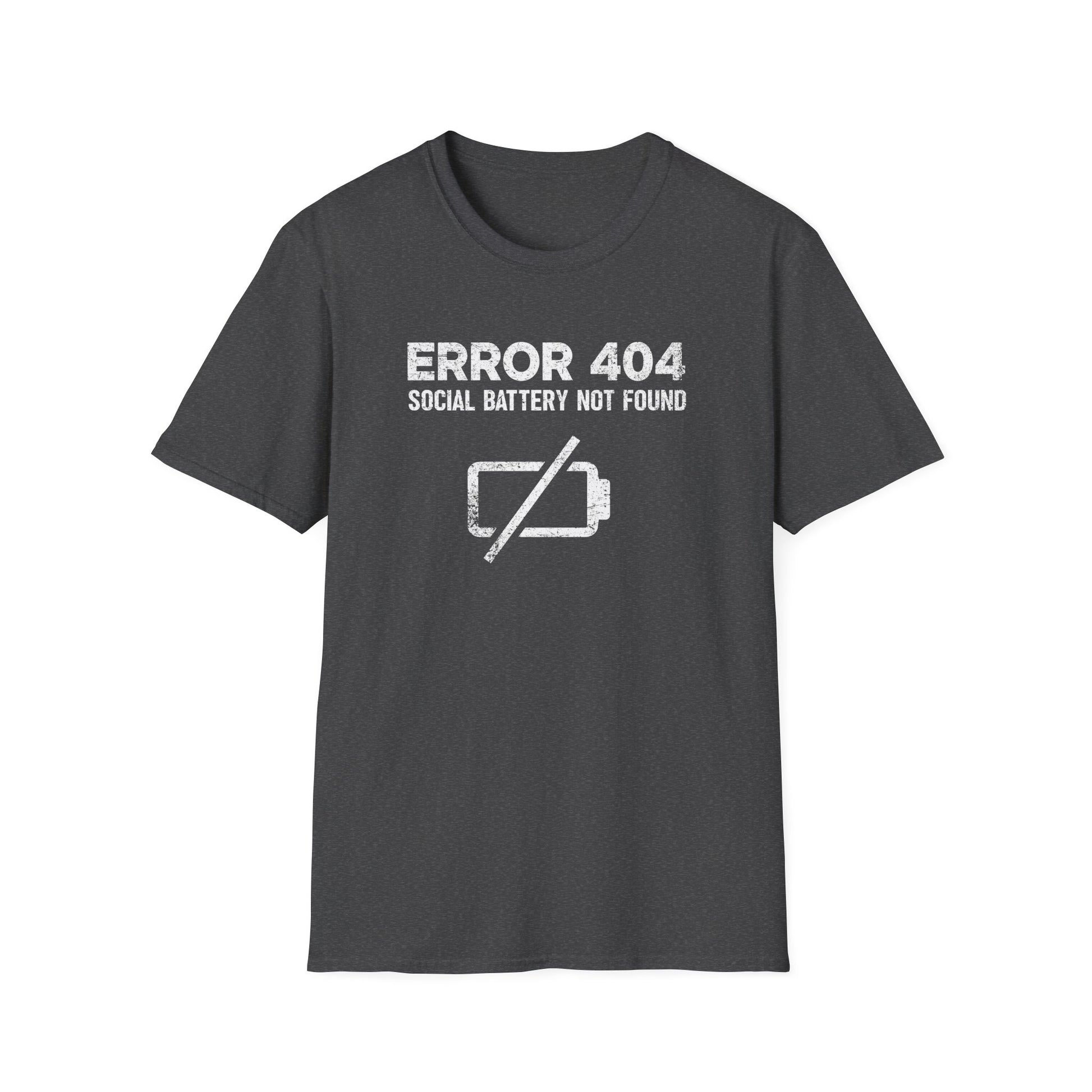 Running low on social energy? This witty retro tech-inspired tee takes the classic “Error 404” message and applies it to real life. Printed on soft, ring-spun cotton for all-day comfort.