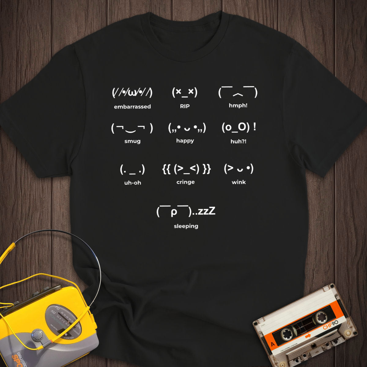 Say more with pixels than words. This tee brings classic kaomoji energy to life.