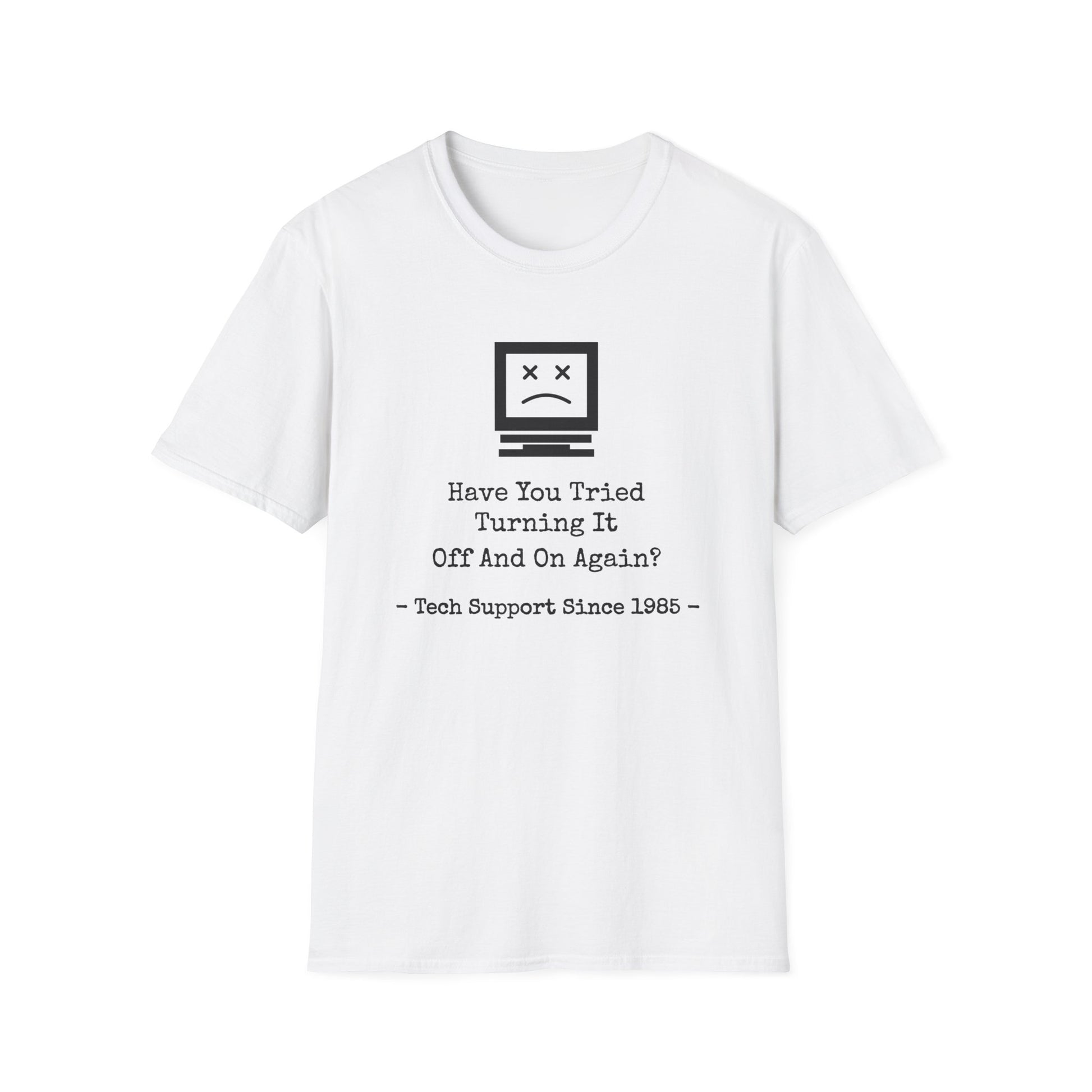 The oldest trick in the IT book, now on a tee. Perfect for techies, office warriors, and anyone whose first solution is “restart it.” Soft ring-spun cotton, modern classic fit, printed in the USA.