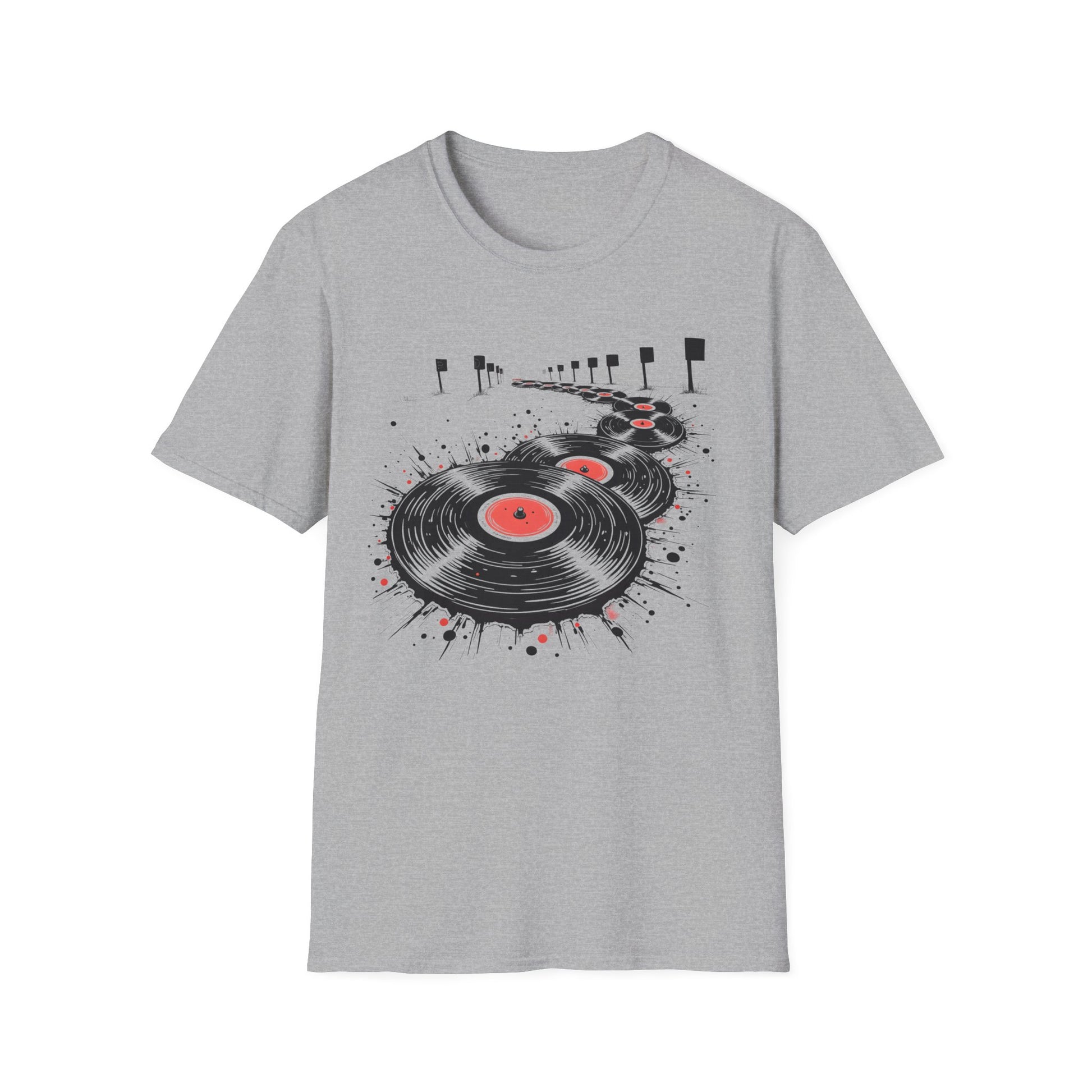 Vinyl in motion. Soft ring-spun cotton, modern classic fit, printed and shipped in the USA.