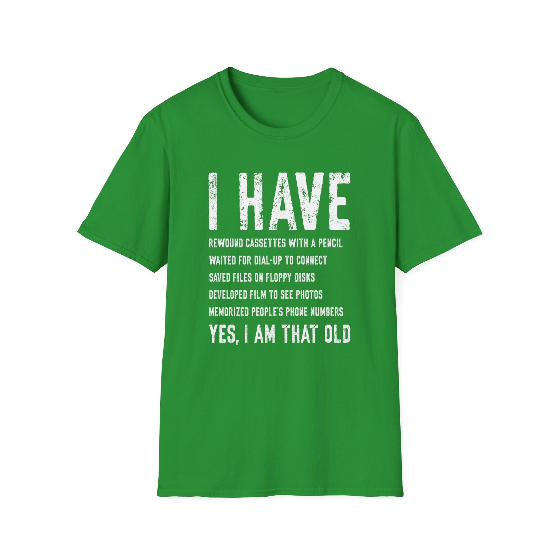 From floppy disks to cassette mixtapes, this tee lists your retro résumé. For anyone who’s proudly “that old” and not afraid to show it. The t-shirt is made out of 100% ring-spun cotton (or cotton blend for heather colors), with classic fit. Printed in the USA.